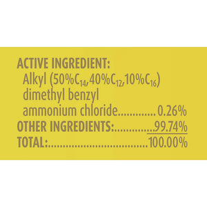 View Details- Kills 99.9% of viruses and bacteria, including cold and flu viruses, Salmonella, E. Coli, MRSA, RSV, Staph and Strep, when used as directed on hard, non-porous surfaces.