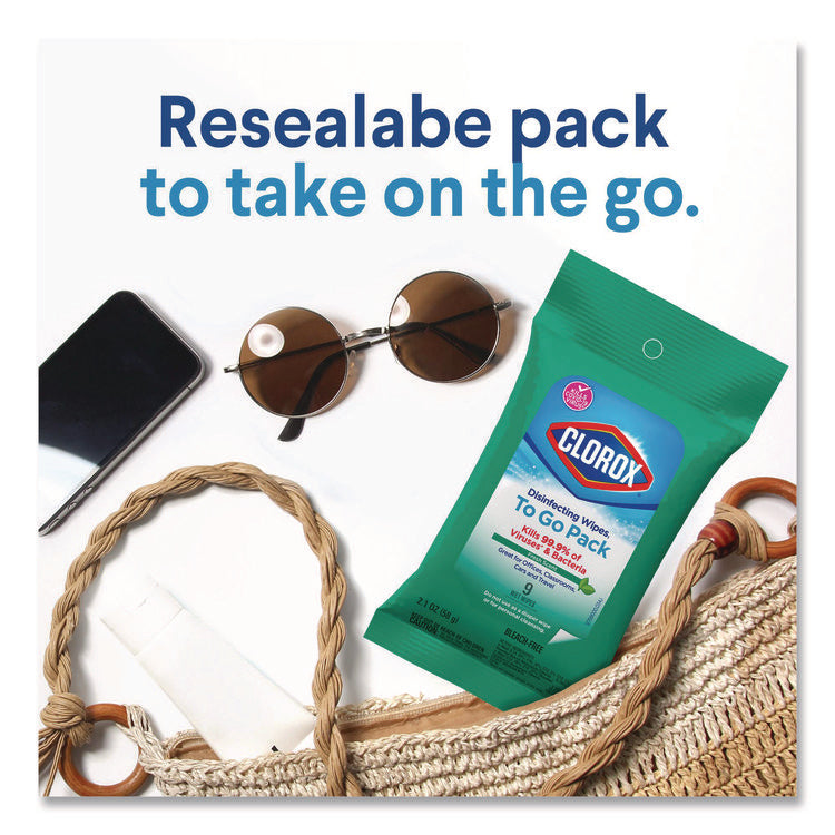 Disinfecting Wipes, On the Go Bleach Free Travel Wipes, 1-Ply, 6.53 x 2.79, Fresh Scent, White, 9/Pack, 24 Packs/Carton