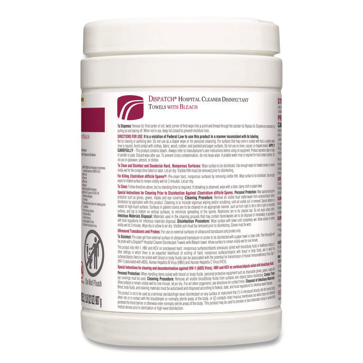 - HOSPITAL CLEANER WIPES: Worry less with Dispatch® Hospital Cleaner Disinfectant Towels with Bleach, recommended in cleaning and care guides for disinfecting hospital equipment