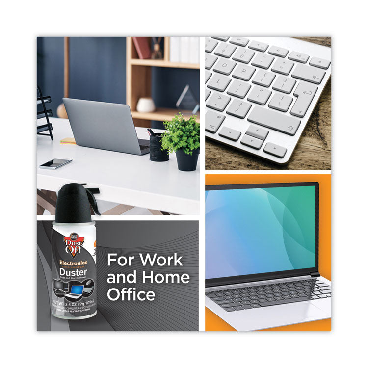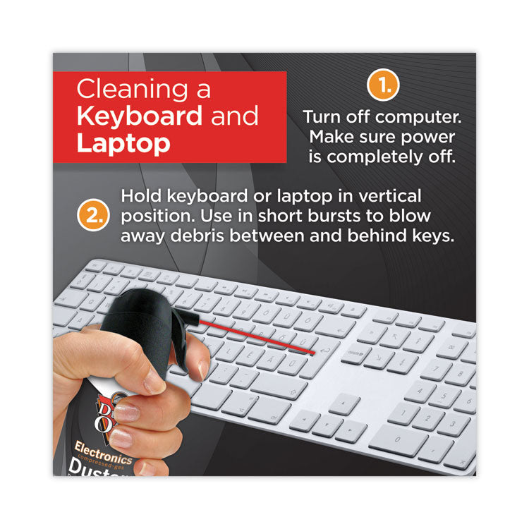 Dust-Off disposable dusters provide potent dust-removing power for practically any task. Ideal for cleaning technology like keyboards, laptops and CPUs. But it's not just for electronics! Dust-Off dusters are also great for cleaning items in the home such as collectibles, window blinds, lamp shades, craft projects and sewing machines. Each duster includes extension tube to get in hard-to-reach places. Contains a bitterant to help discourage inhalant abuse.