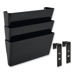 An essential tool for every office or cubicle, this attractive three-pocket filing system moves papers off the desk, creates extra space and organizes your office. Its waterfall design provides visibility to many files at one time. Each pocket connects to one another with the included EZ Link linking pins, and attaches to the adjustable partition brackets with hardware provided. Each pocket accommodates letter-size documents and files and is great for large workloads. Durable construction for long-lasting use. Partition brackets adjust to 2.5" wide for most wall panels. Also wall mountable (hardware included).