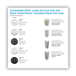 Dixie® Dome Plastic Hot Cup Lids have a sip-through opening to help your customers enjoy hot beverages while helping protect against splashes. Use the condiment identifier to mark the coffee lid for easy identification. The WiseSize packaging offers efficiencies for your business, featuring a smaller case size and individually UPC-coded packs for easy delivery or retail sales. Sip-through hole makes it easy to drink from while on the go. Stacking feature makes it easier to carry two cups at a time.