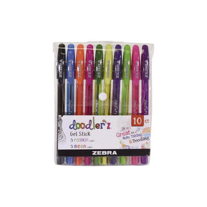 Want a pen that's the perfect mix of functionality and creativity? Then Zebra's Doodler'z Gel Stick Pens are perfect for you! Bold point pens with water-based pigment ink that flows freely, these colorful gel pens are perfect for all of your writing and crafting needs. Each pen features a triangular ergonomic grip for increased comfort and a translucent barrel that indicates the ink color and allows you to easily monitor your ink supply. The matching pen cap features a convenient pocket clip for quick and easy access. The reusable storage case allows you to keep all your pens organized at home or on-the-go so you can doodle to your heart's content wherever you are. Explore the never-ending possibilities for color-coding, sketching, journaling, and embellishing with Zebra Doodler'z Gel Stick Pens! For optimal performance, we recommend shaking pen before writing.