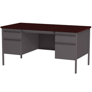 Double Pedestal Steel Desk, 60" x 30" x 29.5", Mahogany/Charcoal, Charcoal Legs