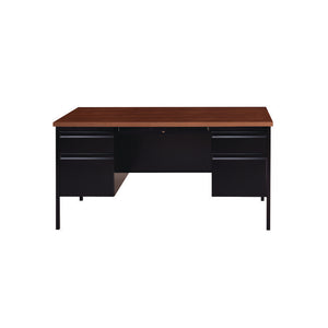Double Pedestal Steel Desk, 60" x 30" x 29.5", Mocha/Black, Black Legs