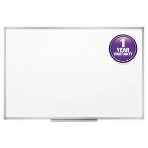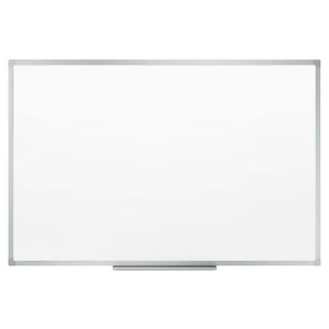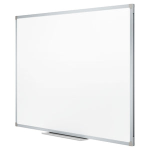 Never forget another meeting with this versatile dry-erase board. The dry-erase melamine surface makes writing less of a chore and cleans up fast. Use the board to jot down important reminders, or use it to map out a new business strategy. This durable board hangs horizontally and vertically, and is easy to install with the included mounting hardware. The aluminum finish frame blends into any occasional-use small commercial or home office.