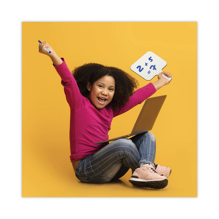 Make everything more fun with dry erase paddles. Quick and quiet whole class participation is made easy with dry erase answer paddles that easily write and wipe clean with an eraser. Great for review sessions, surveys, assessments, and more! High quality, non-ghosting dry erase surface with an easy grip handle and smooth edges.