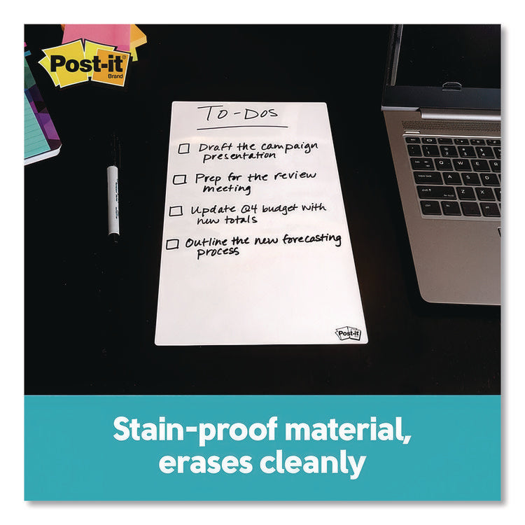 Flexible dry erase whiteboard transforms walls and other surfaces into a whiteboard. The surface is stain free and allows your team to be creative and share ideas, again and again, without ghosting. Easy to install and requires no tools—just unroll, peel and stick. Transform walls, replace a blackboard or stained whiteboard into a fresh dry erase surface. Use with Post it Super Sticky Notes to organize ideas. Whenever you want to brainstorm, present or track projects, Post it Brand is ready to help you succeed.