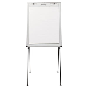 Durable steel easel with smooth whiteboard writing surface and flipchart pad holder. Delivers effective performance when collaboration is needed in low-use work environments. Flexible frame adjusts from 40" to 70" in height, allowing for tabletop and free-standing presentation versatility. Extend surface life with regular cleanings using Quartet® cleaning solutions. Sturdy steel legs with rubber feet prevent skidding and protect floors from scratches. Accessory tray features protective end caps to hold markers and erasers in place for convenient access. Includes one Quartet® dry-erase marker.