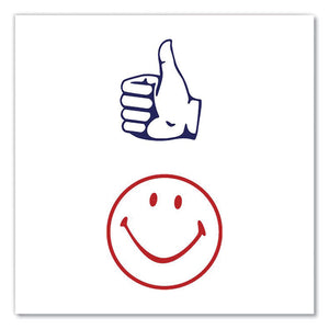 Dual Message Pre-Inked Round Stamp, Smiley Face/Thumbs-Up, 0.63" dia, Red/Blue