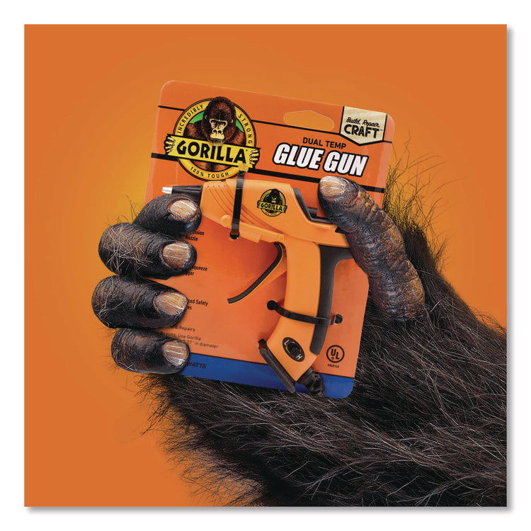The Gorilla Dual Temp Mini glue gun is an ideal tool for crafts and repairs. The comfort grip and built-in stand make the lightweight glue gun easy to use. The easy-squeeze trigger and long insulated nozzle allow a precise application on whatever project you are working on.