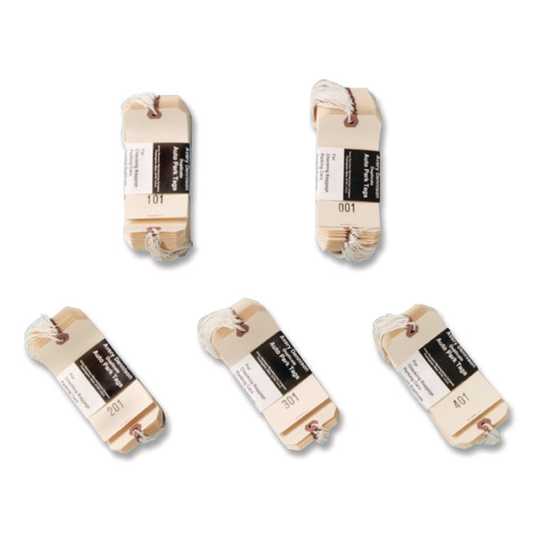 From coats to keys, Duplicate Auto Park Tags make sure nothing gets lost in the shuffle. They feature a reinforced patch and strong twine that affixes quickly and reliably, so important items such as keys are securely labeled and quickly stored. Tags are conveniently banded in packs of 100, and sequentially numbered 1 to 500 in duplicate on the top and bottom coupon for easy identification. Customers and guests are in and out with their belongings in no time. And thanks to little details like Avery Duplicate Auto Park Tags, customer service is at its best.