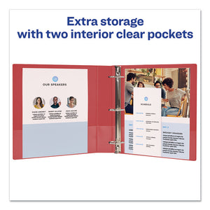 Durable binder features a sturdy construction that's ideal for frequent referencing. The DuraHinge® design is stronger, lasts longer and resists tearing, and the DuraEdge® feature makes the sides and top more pliable, providing greater split resistance. Deeply textured film offers a smoother finish and features a linen pattern for a high-quality look and feel. The binder features wider front and back panels to fully cover standard dividers and sheet protectors. Slant rings have a higher page capacity when compared to the same size round rings. Pages lie flat with back-mounted rings. Two interior pockets provide plenty of room to store both punched and unpunched paperwork.