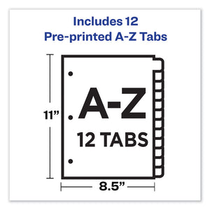 Durable Preprinted Plastic Tab Dividers, 12-Tab, A To Z, 11 X 8.5, Assorted, 1 Set