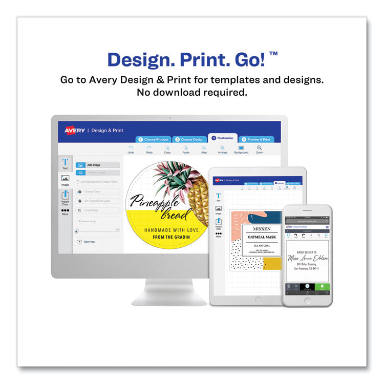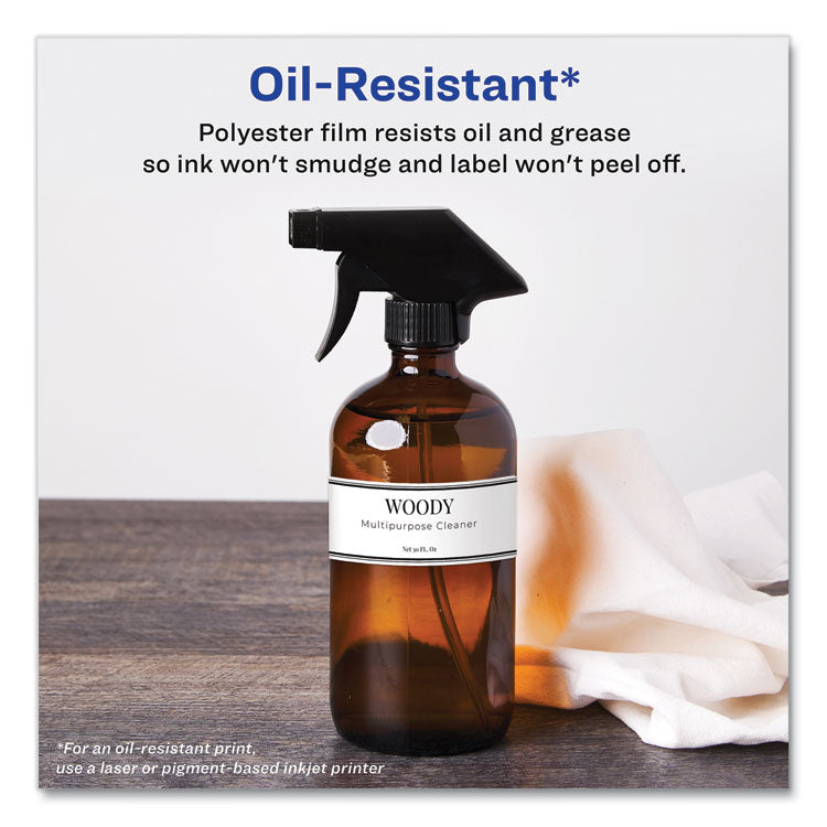 Showcase your brand with these versatile wraparound labels. Their water-resistant material and permanent adhesive make them perfect for branding water bottles. They're also ideal for use on products, packaging, marketing materials and more to make your brand or logo really stand out in the crowd. They stick to glass, plastic, paper and other materials, so you can put your mark on nearly any product. Our Print-to-the-Edge feature lets you add a full-color background and with free templates from Avery® Design & Print, you can easily customize the labels with your branding in mind. Brand your business with these unique labels. Print-to-the-Edge of the label for a custom look.
