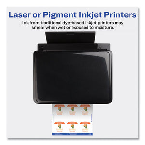 These labels let you take your branding message outdoors. They’re specially made of a sturdy polyester material that holds up to moisture, scuffing and tearing. Perfect for identifying contents of containers at outdoor events, refrigerated products, plants and more — just customize, peel and stick. Our print-to-the-edge feature lets you add a full-color background to make your label really pop. With a few quick steps you can easily personalize them with your logo, product information or QR code. Print-to-the-edge feature lets you add bright, bold colors and text all the way to the edge of the label. Compatible with both laser and inkjet printers.