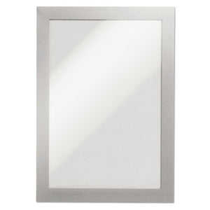DURAFRAME® Self-Adhesive Sign Holders from DURABLE® are the go-to solution for effortless professional signage display. Easily showcase important information on windows, glass doors, or any smooth, solid surface with these dual-sided frames, instantly grabbing attention and effectively conveying your message right where you need it. The double-sided visibility displays two messages simultaneously for maximum impact. Perfect for storefronts, conference rooms, or any area where signage needs to be seen from inside and outside. Keep your messaging up to date with the innovative flip-up magnetic frame. This unique design means you can update promotions, announcements, safety information, or directional signage without any hassle. Simply lift the frame, swap out your content, and secure it back in place with the magnetic closure. This keeps your signage fresh, relevant, and engaging for your employees and customers. With no bulky mounting hardware or unsightly tape, these sign holders have a clean and modern appearance. DURAFRAME's self-adhesive backing securely adheres to any smooth, solid surface, and can be repositioned without leaving behind any residue, giving you the flexibility to adjust your signage as needed. Tailor your signage to fit your unique space perfectly by placing DURAFRAME in portrait or landscape orientation. Ideal for fast-paced and high-traffic environments such as retail stores, restaurants, hotels, offices, warehouses, healthcare facilities, and manufacturing plants, DURAFRAME Self-Adhesive Sign Holders offer practicality and versatility for your signage needs.