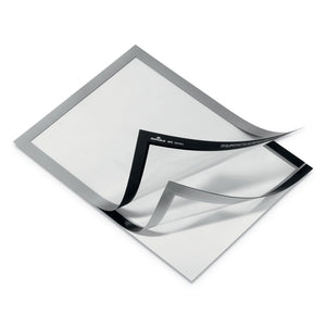 DURAFRAME® Self-Adhesive Sign Holders from DURABLE® are the go-to solution for effortless professional signage display. Easily showcase important information on windows, glass doors, or any smooth, solid surface with these dual-sided frames, instantly grabbing attention and effectively conveying your message right where you need it. The double-sided visibility displays two messages simultaneously for maximum impact. Perfect for storefronts, conference rooms, or any area where signage needs to be seen from inside and outside. Keep your messaging up to date with the innovative flip-up magnetic frame. This unique design means you can update promotions, announcements, safety information, or directional signage without any hassle. Simply lift the frame, swap out your content, and secure it back in place with the magnetic closure. This keeps your signage fresh, relevant, and engaging for your employees and customers. With no bulky mounting hardware or unsightly tape, these sign holders have a clean and modern appearance. DURAFRAME's self-adhesive backing securely adheres to any smooth, solid surface, and can be repositioned without leaving behind any residue, giving you the flexibility to adjust your signage as needed. Tailor your signage to fit your unique space perfectly by placing DURAFRAME in portrait or landscape orientation. Ideal for fast-paced and high-traffic environments such as retail stores, restaurants, hotels, offices, warehouses, healthcare facilities, and manufacturing plants, DURAFRAME Self-Adhesive Sign Holders offer practicality and versatility for your signage needs.