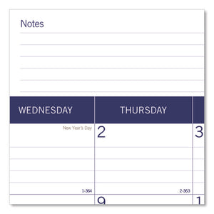 Produced with high-quality paper made mostly from a sugarcane stock called bagasse. Features a contemporary design with one month per sheet, one ruled block per day, ruled space for notes and a yearly calendar at the bottom of each sheet. Top-bound, perforated sheets, includes reinforced chipboard backer and black leatherette corners.
