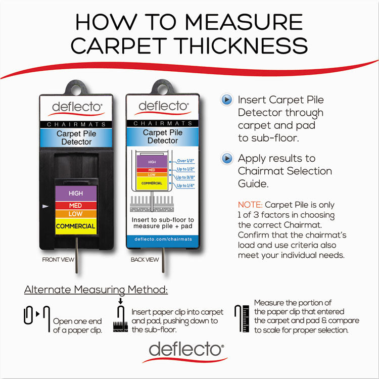 - Lightweight chair mat for moderate office use on carpets up to 0.38" thick, low pile; choose a higher pile chair mat if daily usage is over six hours.
