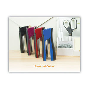Ready to step up your stapling game? Do so with this 20-sheet dynamo stapler by Bostitch. It features an integrated pencil sharpener and push-style remover, making it an all-in-one product. Perfect for the classroom or corporate office. You can tack bulletin boards or complete any craft as it opens up. Get a strong grip with the ergonomic rubber handle and non-slip base. Stand it up or lay it flat for easy grabbing and storage options. The color matches the Bostitch Konnect line, making office organization and wire management a breeze. Now get to stapling!