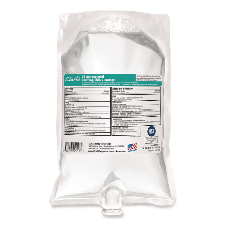 E2 Antibacterial Foaming Skin Cleanser Refill, Fragrance-Free, 1,000 mL, 6/Carton