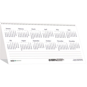 - Stand-alone, tent-design calendar is perfect where desk space is limited.