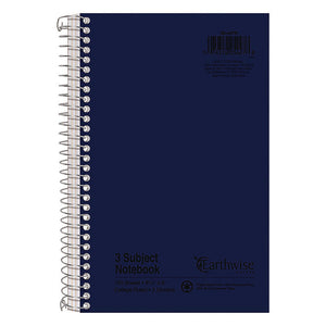 Earthwise® by Oxford® Recycled 3-Subject Notebooks have paper made from recycled fiber. These classic spiral notebooks have 2 dividers, durable covers and a sturdy no-snag coil that resists catching on backpacks, papers or clothing. Color may vary.