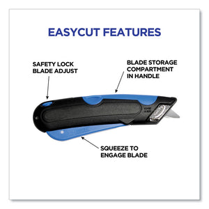 Easycut Cutter Knife w/Self-Retracting Safety-Tipped Blade, 6" Plastic Handle, Black/Blue