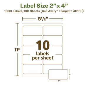 Ecofriendly Mailing Labels, Inkjet/laser Printers, 2 X 4, White, 10/sheet, 100 Sheets/pack
