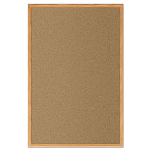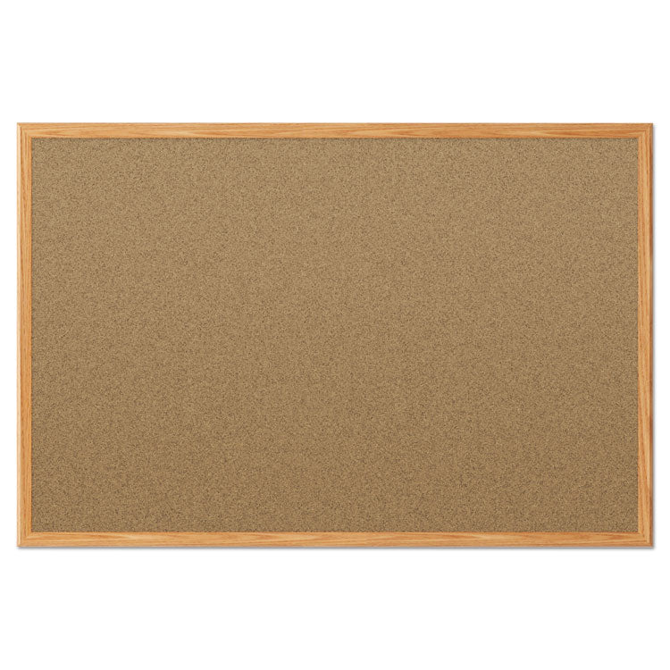 Economy Cork Board with Oak Frame, 48" x 36", Tan Surface, Oak Finished Fiberboard (MDF) Frame