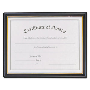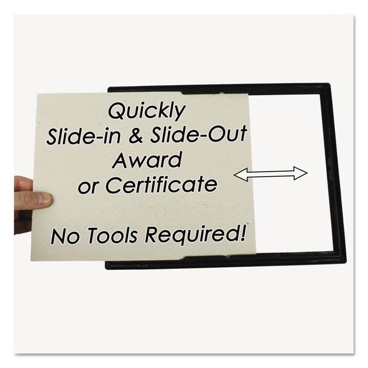 Economy award frame where recognition is important. Includes two 8 1/2" x 11 pre-printed fill in the blank certificates recognizing achievement and appreciation—or create, print and insert your document. Lightweight shallow plastic frame provides a low-cost framing option where recognition is the reward.