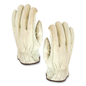 Durable, top-grain cowhide leather gloves deliver excellent abrasion resistance and breathability, making them ideal for construction, machine operation, light-duty welding, farming, ranching and many other general applications. Ergonomic keystone-thumb design reduces hand fatigue while offering superior dexterity. Gauntlet-cuff design features an elastic closure, sewn inside the glove, for both wearing comfort and additional safety.