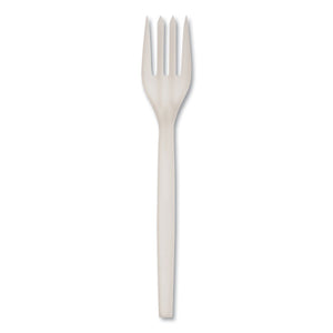 EcoSense Renewable Plant Starch Cutlery, Fork, Plastic, Cream, 50/Pack, 20 Packs/Carton