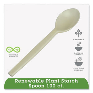 EcoSense Renewable Plant Starch Cutlery, Spoon, Plastic, Cream, 50/Pack