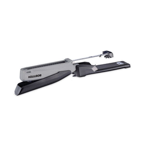 Make stapling a breeze with the Bostitch Office One-Finger™ Spring-Powered Technology! Experience lightning-fast, jam-free stapling at work, school or home with just the touch of a finger. Effortlessly secure up to 20 sheets, ensuring your essential documents are always securely fastened wherever you are. Discover the built-in staple puller and storage compartment, allowing for quick fixes and seamless organization. Its ergonomic design perfectly fits the palm of your hand, ensuring comfortable and precise stapling without any misses. This versatile stapler also opens for bulletin board tacking and craft projects, enhancing its functionality. Crafted with post-consumer content recycled plastic, it's not just a purchase, but a sustainable choice for your office.