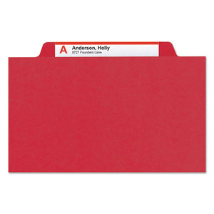 Eight-Section Pressboard Top Tab Classification Folders, 8 SafeSHIELD Fasteners, 3 Dividers, Letter Size, Bright Red, 10/Box