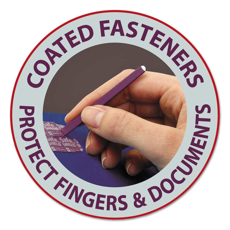- Patented SafeSHIELD® coated fasteners help prevent finger cuts, eliminate paper tears and reduce excessive fastener crinkling.