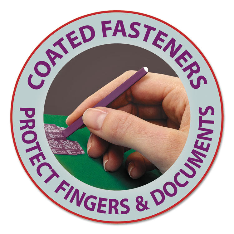 - Patented SafeSHIELD® coated fasteners help prevent finger cuts, eliminate paper tears and reduce excessive fastener crinkling.