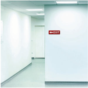 Exit sign lets your customers know the way when the emergency occurs. Helpful tool to help everyone know the exit of the building. Best used in commercial environments. Mounting strips allow for universal mounting on almost any dry, flat surface. Made with brightly contrasting print that will stand out in any setting.