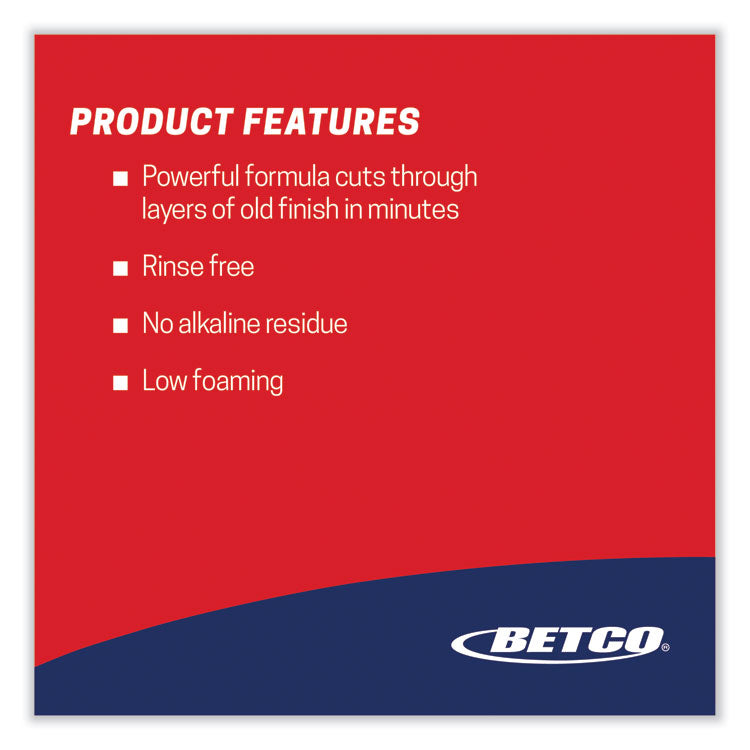 This fast-acting floor finish liquefier will solve stripping difficulties caused by frequent high speed burnishing, super hard urethane fortified finishes or excessive buildup. This product is designed to remove layers of floor finish in less time with less effort and no rinsing. Floors are ready to recoat without neutralizing when used as directed. Recommended for removing water-based acrylic floor finishes from all types of resilient tile and hard surfaces. Pre-test in a small area; color bleeding or discoloration may occur. Not recommended for stripping linoleum or sheet vinyl floors.