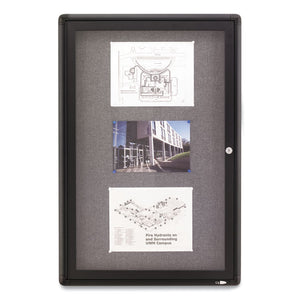 Enclosed Indoor Fabric Bulletin Board with One Hinged Door, 24" x 36", Gray Surface, Graphite Gray Aluminum Frame