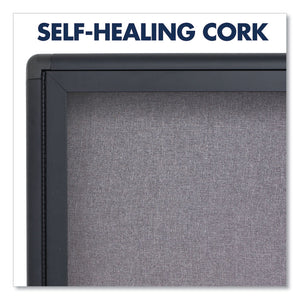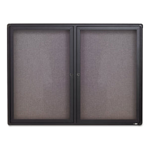 Enclosed Indoor Fabric Bulletin Board with Two Hinged Doors, 48" x 36", Gray Surface, Graphite Gray Aluminum Frame