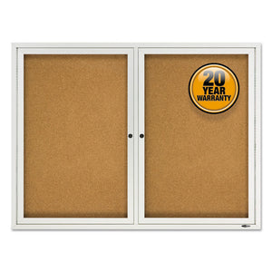 Enclosed Outdoors Bulletin Board with Two Doors, 48" x 36", Tan Surface, Anodized Aluminum Frame