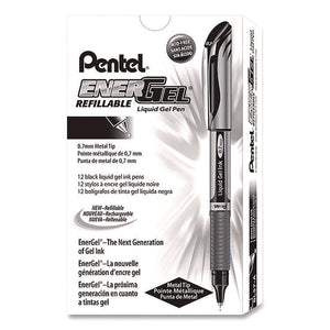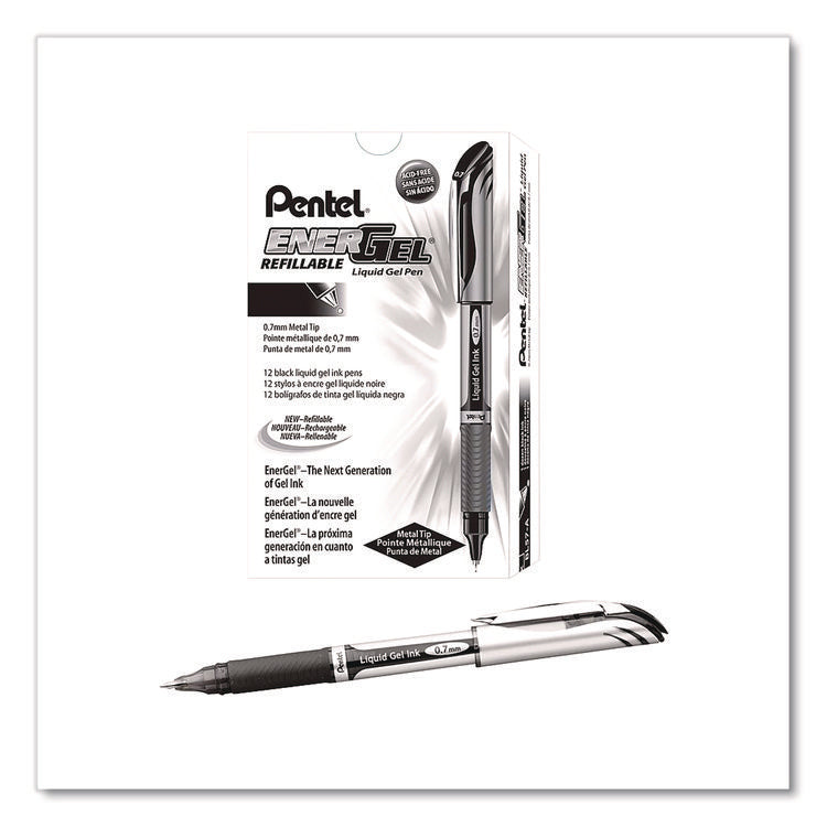EnerGel Deluxe Gel Pen, Stick, Medium 0.7 mm, Black Ink, Silver/Black Barrel, Dozen