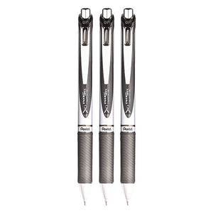 EnerGel RTX Deluxe Gel Pen, Retractable, Medium 0.7 mm, Black Ink, Black Barrel, 3/Pack