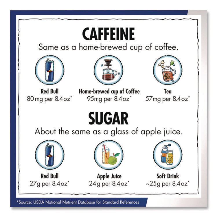 Revitalize mind and body with Red Bull®: It gives you wings®. Helps you feel significantly more energetic, while simultaneously improving your ability to focus and concentrate. Contains taurine, caffeine and B-group vitamins.