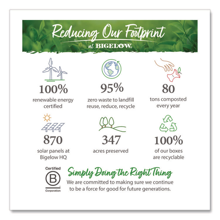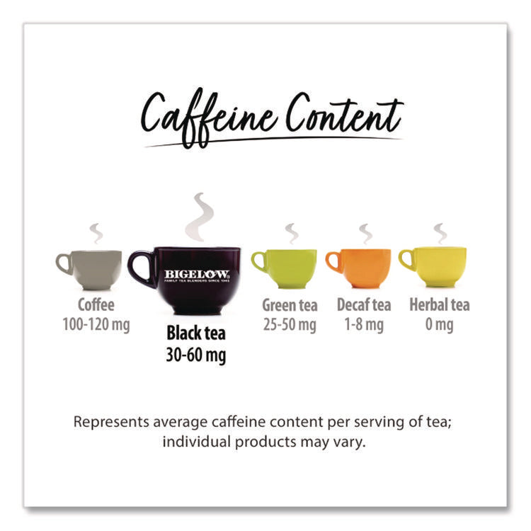 Sipped throughout the day, black tea quenches, soothes and satisfies while also providing your body with important antioxidants. Few drinks can invigorate the body so well and also deliver such a bold, full-bodied, savory flavor. Because Bigelow® only uses the finest mountain-grown black tea leaves, you can be sure that you're serving one of the best of its kind.