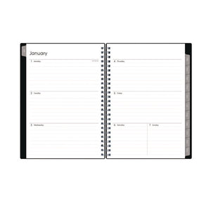 The professional exterior you're looking for, with the interior contents you need. Easily plan out your year and stay on track every month, every week, every day with the Enterprise Weekly/Monthly Notes Planner. Weekly spreads provide plenty of space for your daily schedule throughout the week, Monday through Sunday. Monthly spreads feature a standard daily block format with reference calendars and extra space for notes, giving you everything you need for longer-range planning tasks. Each month's durable, coated tab offers quick access to the past, present and future. Six bonus, non-tabbed, past-month spreads run from July through December to help you with your transition into the new year. A robust ruled-notes section allows you to capture just about everything that needs a special notation. Additional resources in the back of the book help you plan out your year and keep everything on track. Flexible cover and snag-free twin-wire binding work together to ensure that everything stays neatly together. Thick, premium, acid-free pages are printed with soy-based ink.
