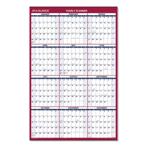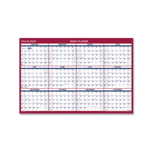 Get the planning versatility that busy professionals need with this reversible wall-calendar. Hang the calendar the way that best meets your needs or track important business events on one side and personal events on the other. Both sides of the calendar display a full 12-months, with one side laid out vertically in four rows of three months and the other side laid out horizontally in three rows of four months. Bold, larger than average print on a contrasting background makes both sides easy to read. And AT-A-GLANCE® is well aware that plans change, so this calendar's made to keep up with the most hectic scheduling issues. Simply note your important information with the included wet-erase marker and wipe the calendar clean with a damp cloth to fully take advantage of its write-on/wipe-off design.